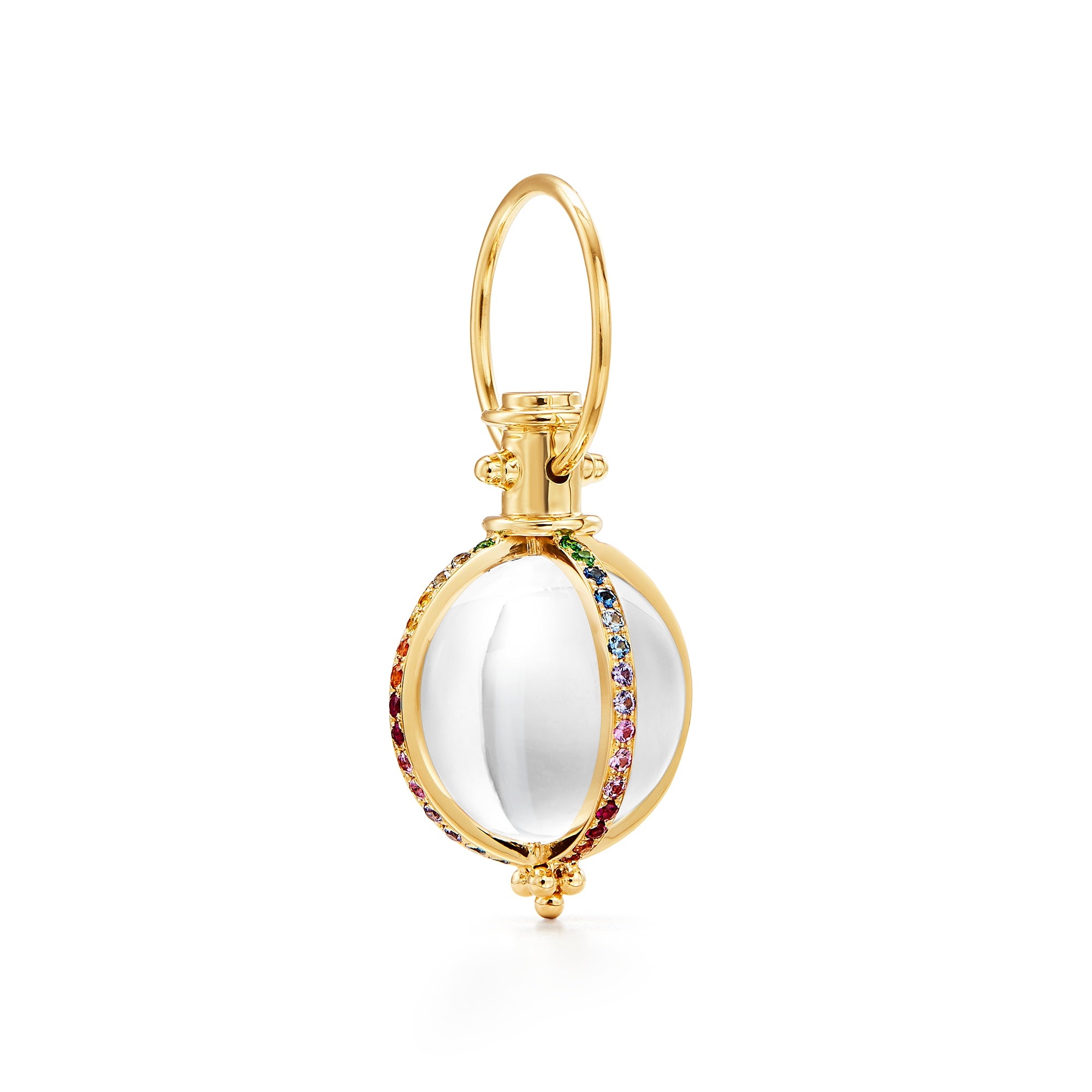 The 18K Classic Rainbow Amulet finds our signature rock crystal elegantly cradled by a colorful spectrum of mixed sapphires, diamonds, tsavorites, and rubies. With fiery reds, blushing pinks, buttercup yellows, sky blues, and seafoam greens, the 18K Classic Rainbow Amulet surely lives up to its name.