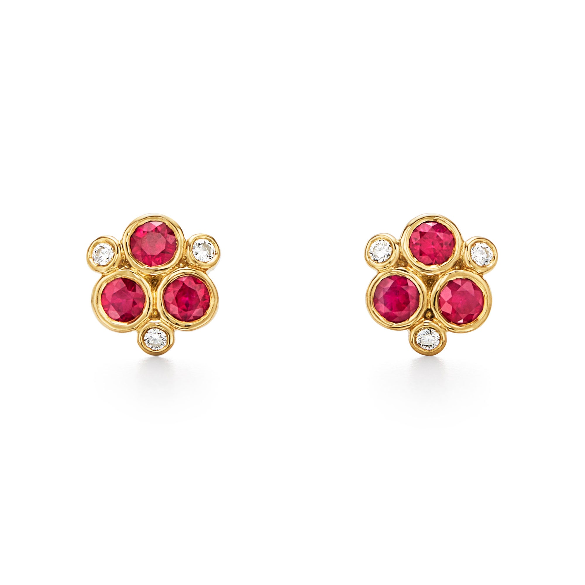 The 18K Ruby Trio Earrings offer a chic take on our signature motif. The perfect way to bring color to any look, these studs bring elegance wherever they go.