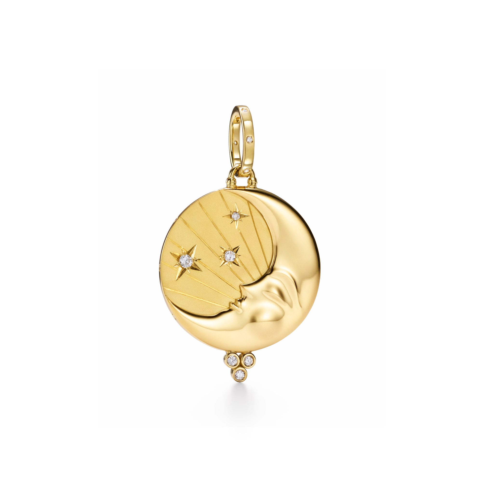 The 18K Large Luna Pendant channels the pure magic of moonlight. Featuring an alternating satin and polished finish and a glowing trio of diamonds, this ethereal pendant lets you bring the beauty of the night wherever you go.