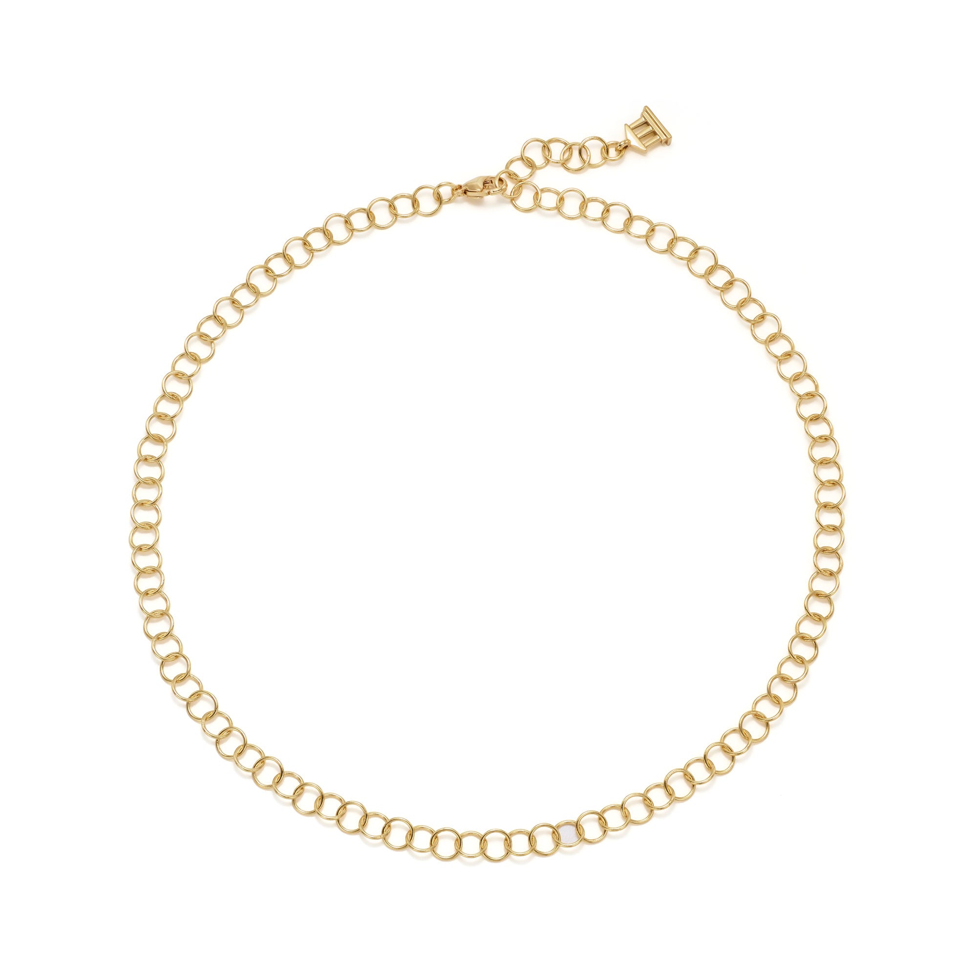 The 18K Classic Round Chain is elegant, lightweight, and versatile. A great go-to, it is the perfect home for any pendant, but we especially love to pair it with the pieces in the Celestial Collection, like the moonfaces or the medium Tolomeos. The 18K Classic Round Chain is available in multiple lengths, and is finished with our signature Temple charm.