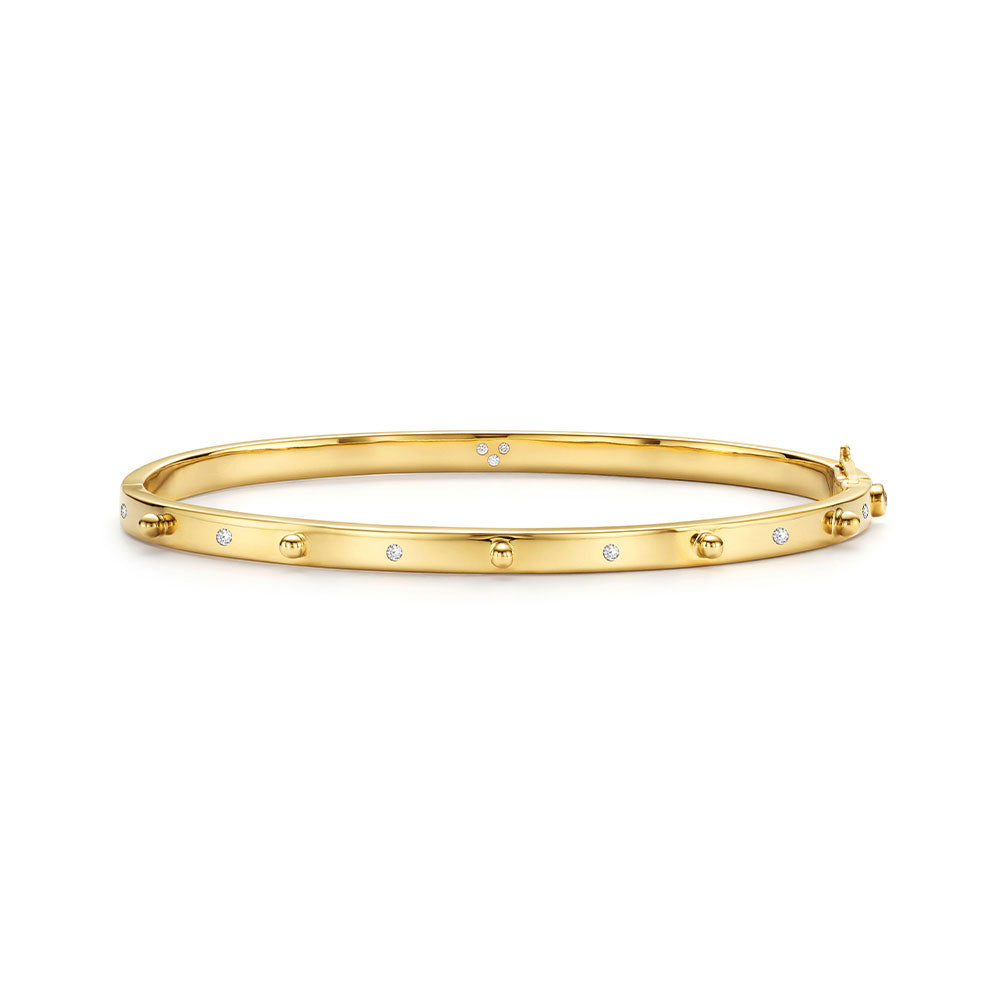 The 18K Small Granulated Bracelet finds brilliant diamonds set in our signature yellow gold.