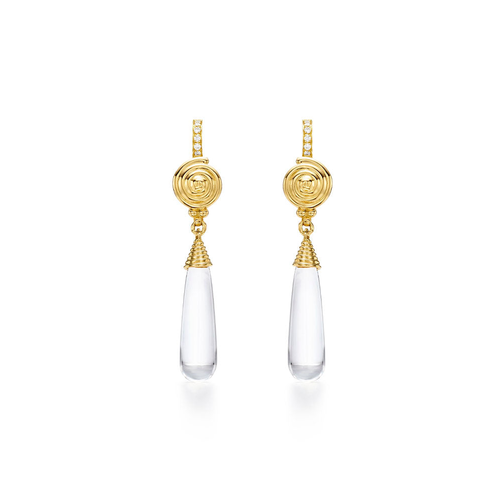 The 18K Spiral Crystal Drop Earrings find two rock crystals dangling from our signature yellow gold.
