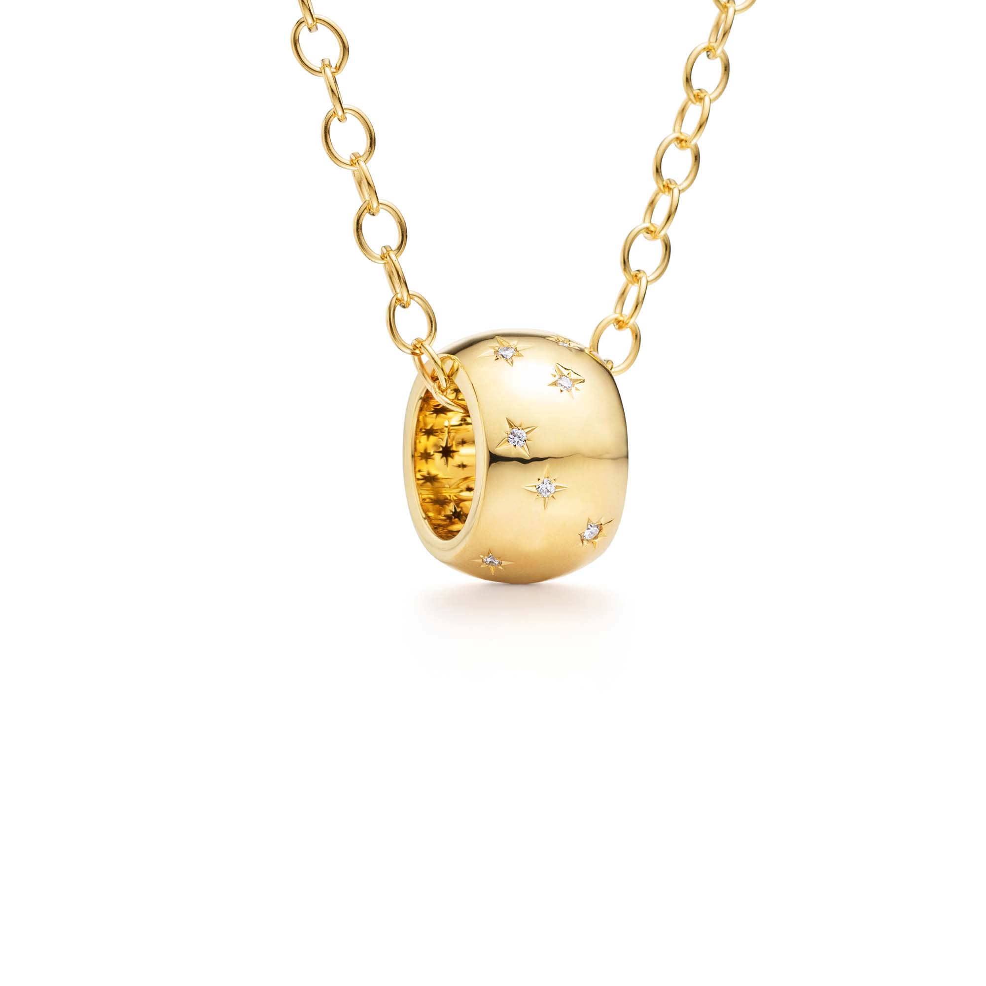 The 18K Cosmos Necklace is fashioned from our signature yellow gold and touched with a delicate constellation of diamonds.