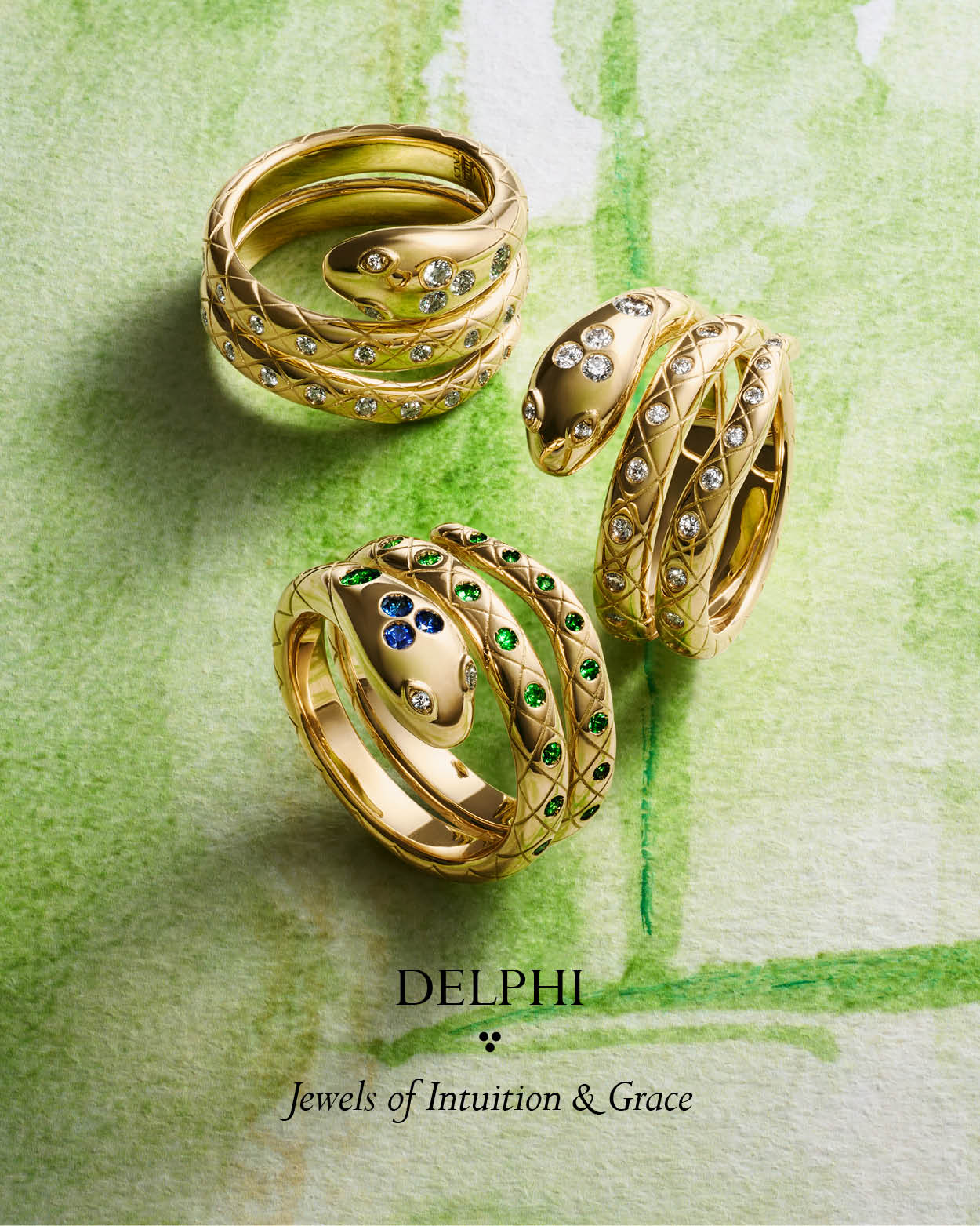 Delphi has long been a symbol of intuition and prophecy where serpents embody wisdom, movement, and transformation. Jewels that celebrate grace in form and feminine insight.