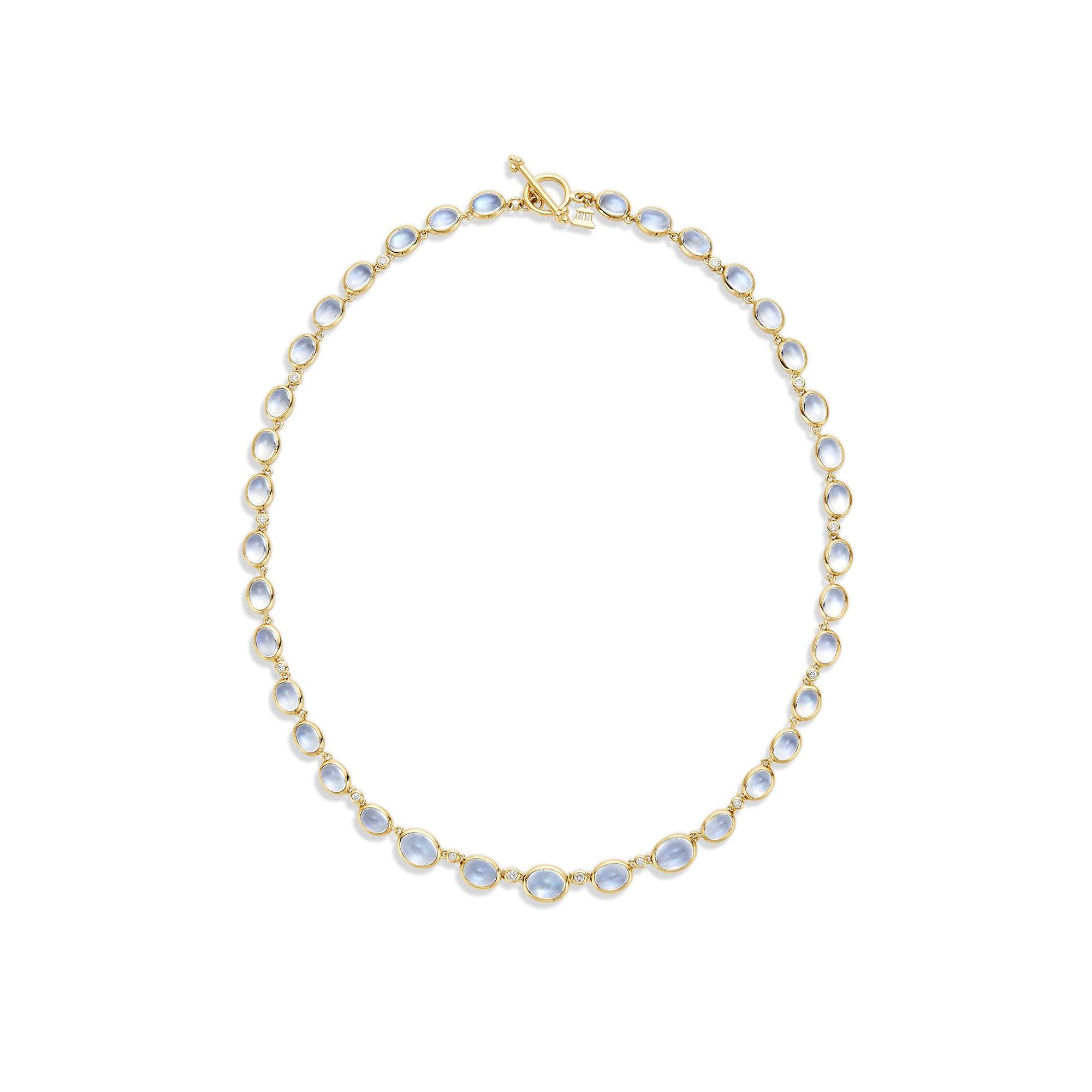 Once thought to be moonlight captured magically in solid form, Blue Moonstone has its own inner glow. The 18K Blue Moon Eternity Necklace finds our signature gem combined with diamonds in a simple, elegant design. Easy to wear on its own or layered, this timeless necklace will become one of your jewelry essentials.