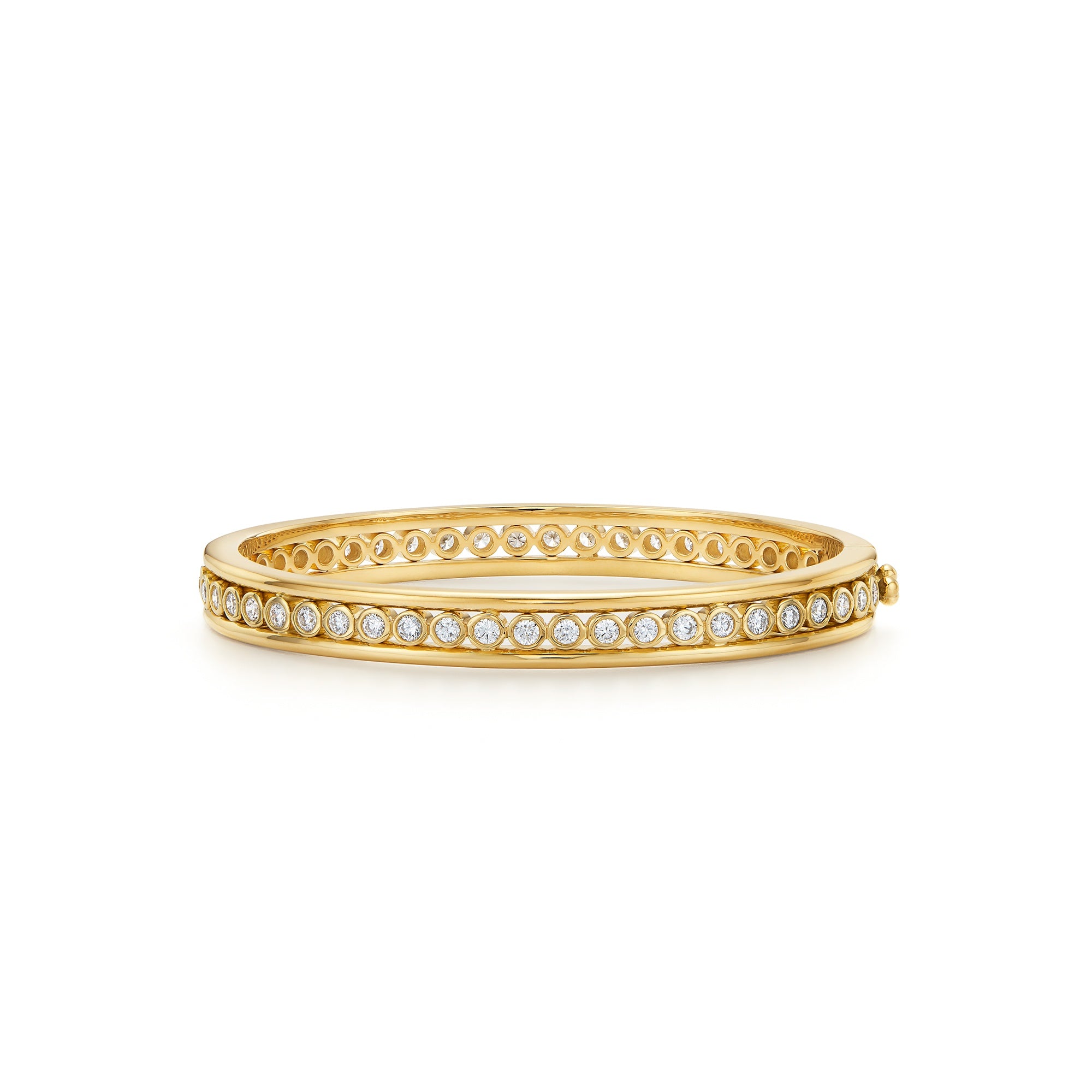 The 18K Diamond Classic Eternity Bracelet symbolizes never-ending love, friendship, or anything that you meditate on as infinite. This timeless classic is available in all diamond and all blue sapphire. Perfect on its own or layered with other bangles, this a Temple St Clair favorite.