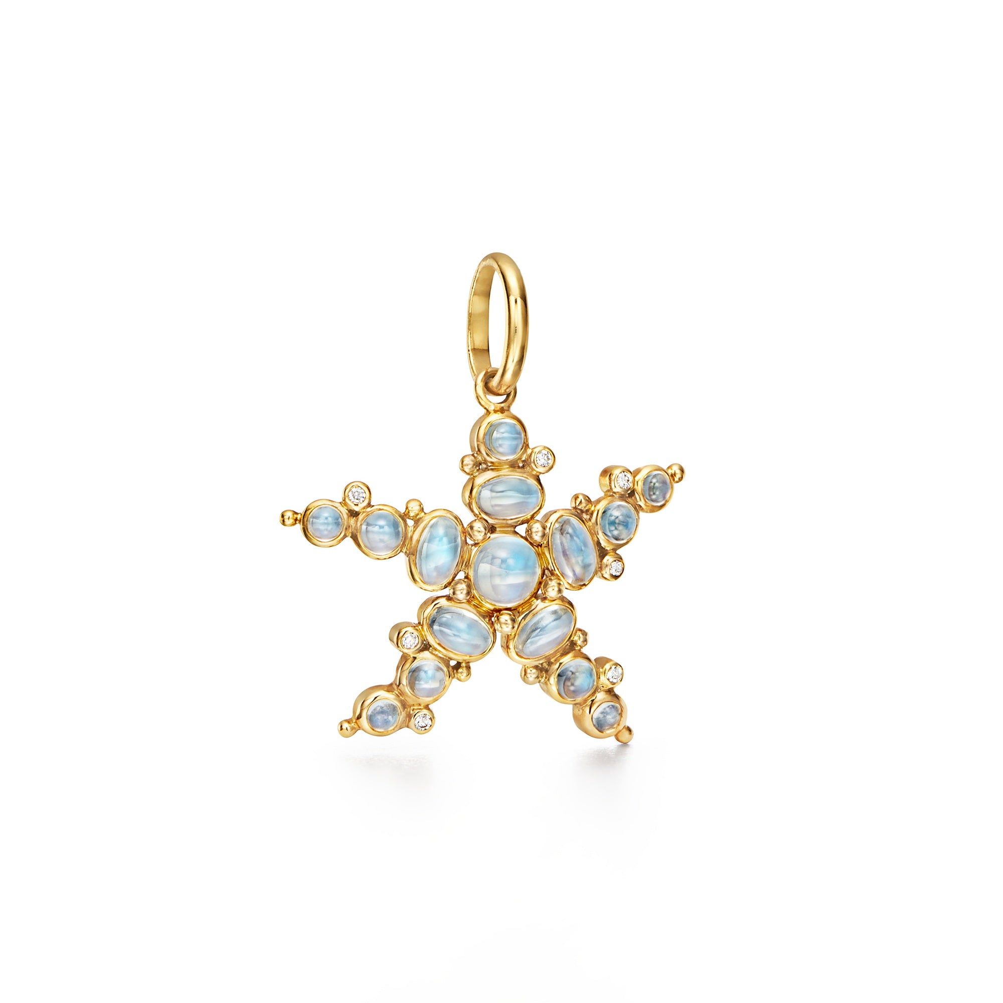 The 18K Sea Star Pendant is part of the Tree of Life Collection, celebrating all creatures that roam the earth, air, and sea. Set with diamonds and our signature Blue Moonstone, this sea star has a luminous, aquatic palette. Take the magic of the ocean with you wherever you go with the 18K Sea Star Pendant.