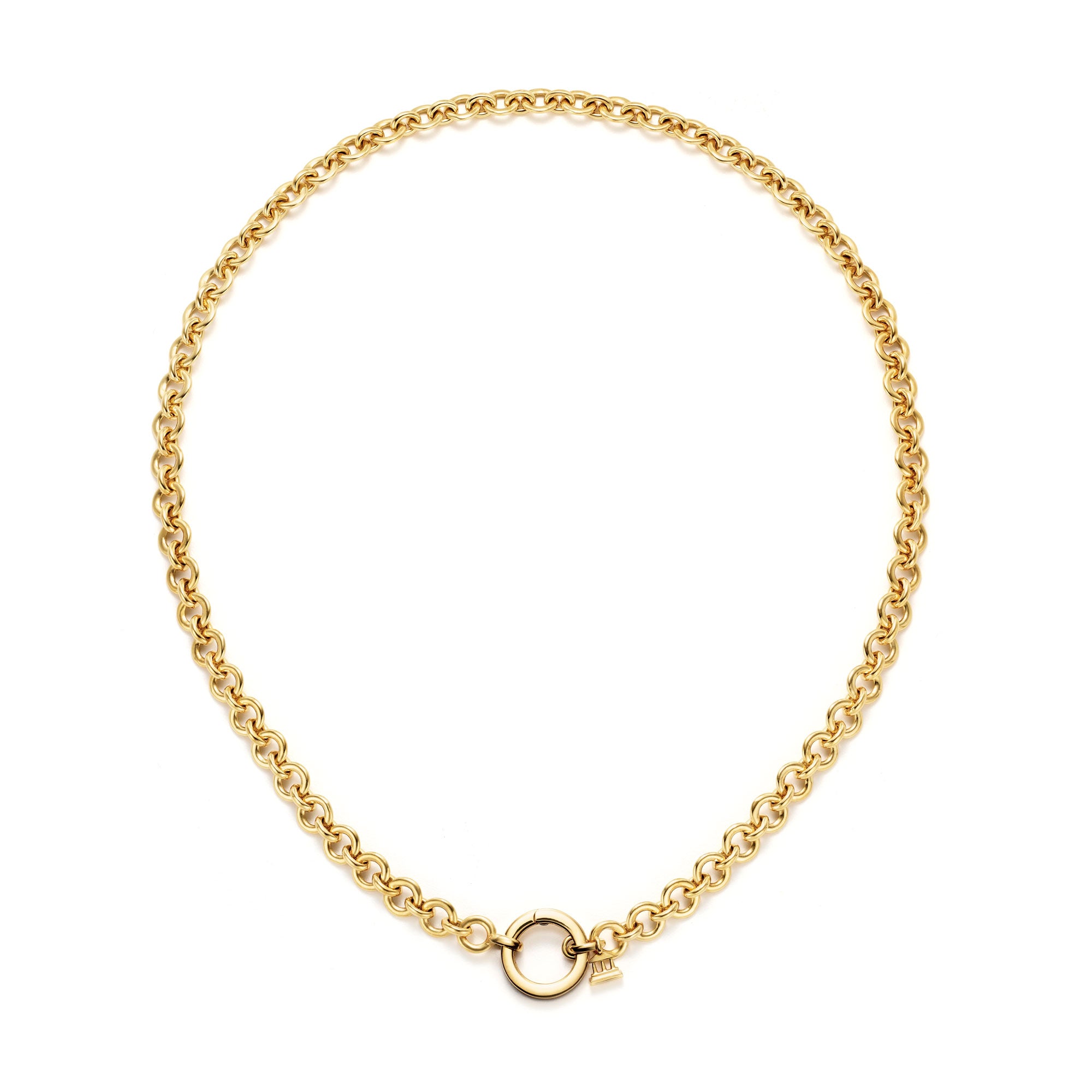 The 18K Small Jean d'Arc Necklace turns to one of history’s strongest women for inspiration. Modeled after the intricate chainmail that Jean wore into battle, this golden necklace is composed of rounded links that lay flat against the body. The center link opens so that a pendant or amulet may be attached. Expertly crafted from our signature yellow gold, this epic necklace showcases the strength in style.
