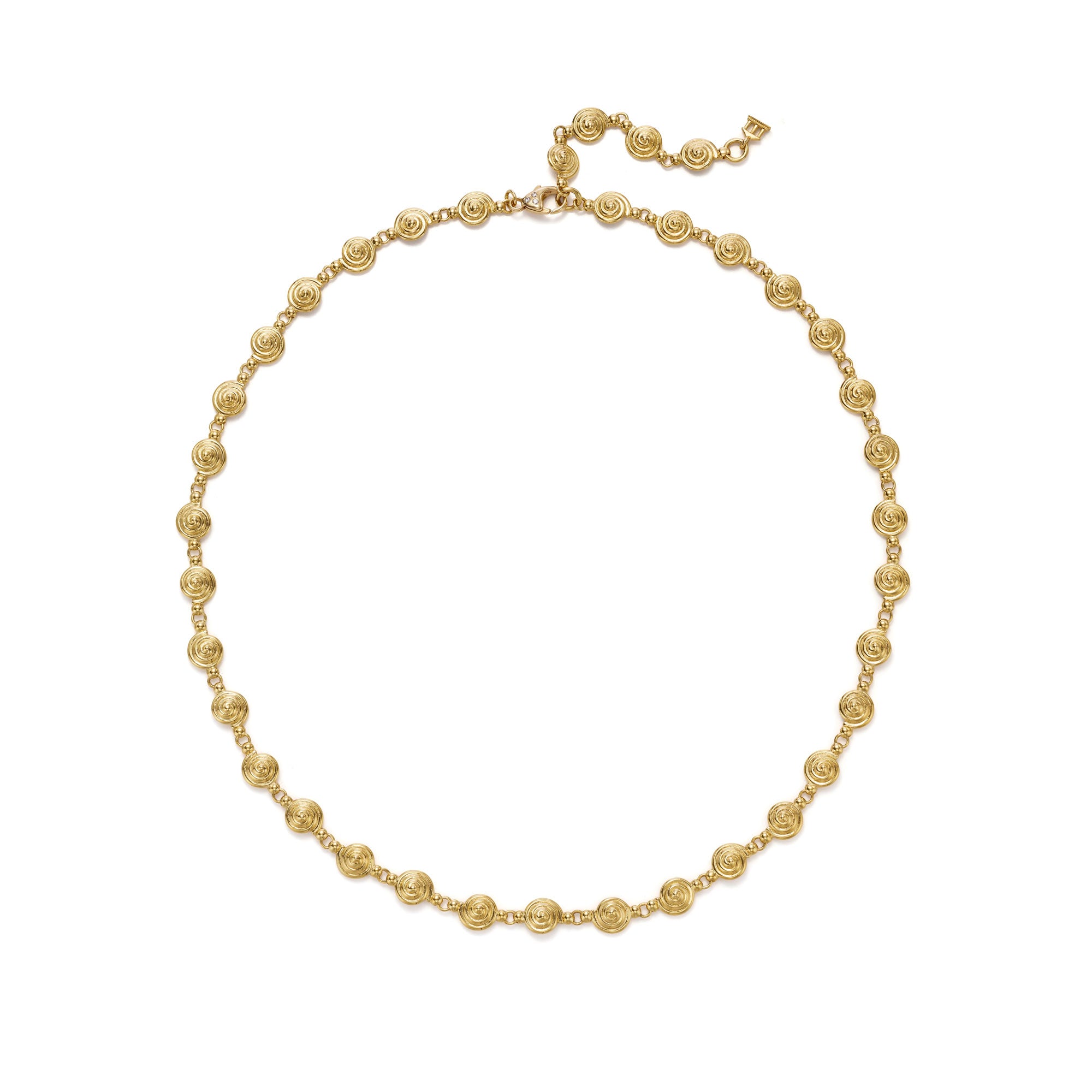The 18K Spiral Necklace is composed of whorls expertly crafted from our signature yellow gold. Touched with diamonds and featuring two possible lengths, this necklace is as versatile as it is glamorous.