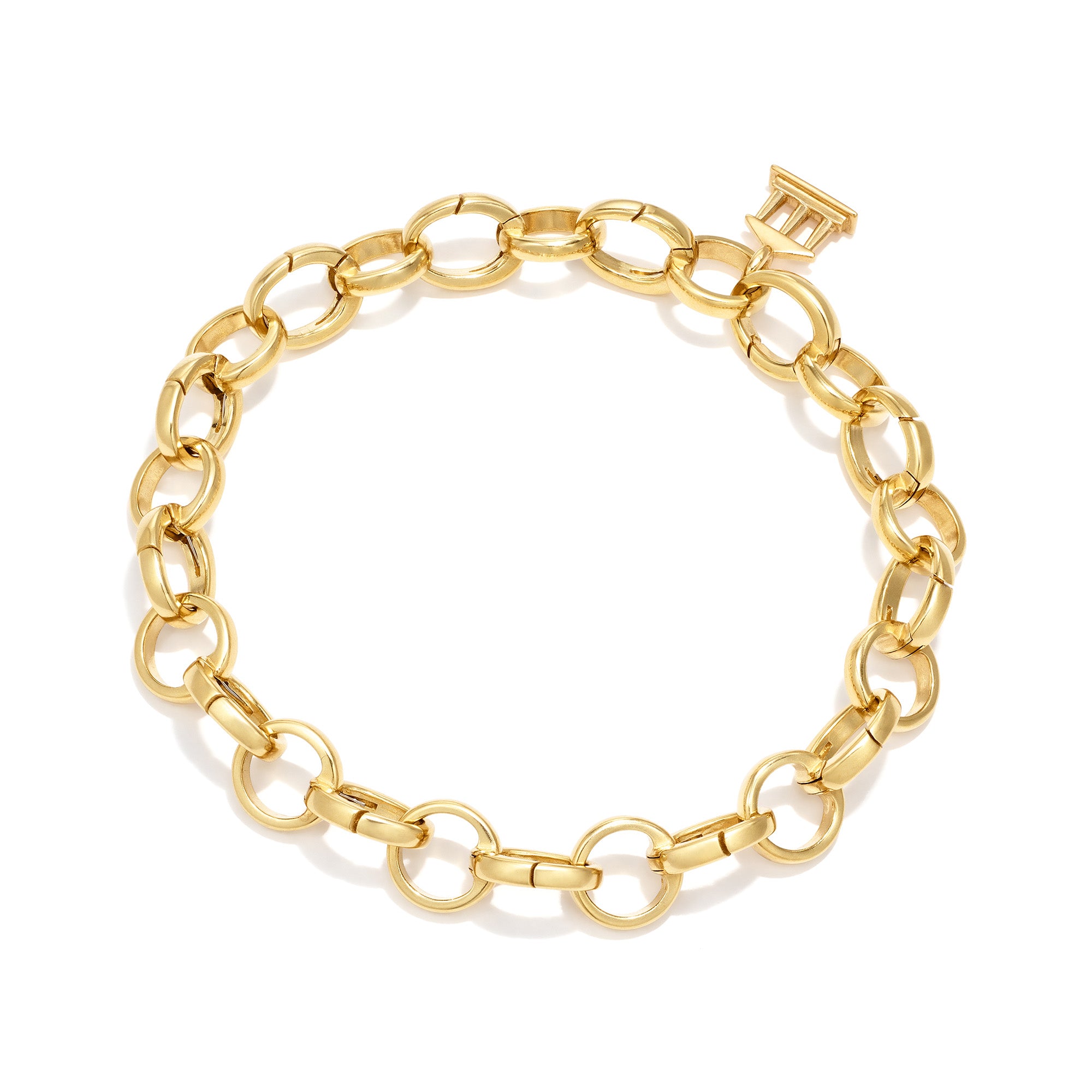 Crafted in our signature 18K yellow gold, the Temple Convertible Charm Bracelet features an elegant composition of oval and round links, inspired by our iconic Arno chains. Personalize your style with effortless charm changes — each oval link opens, allowing you to add, arrange, and refresh your charms to match your mood, your moment, or your personal style.