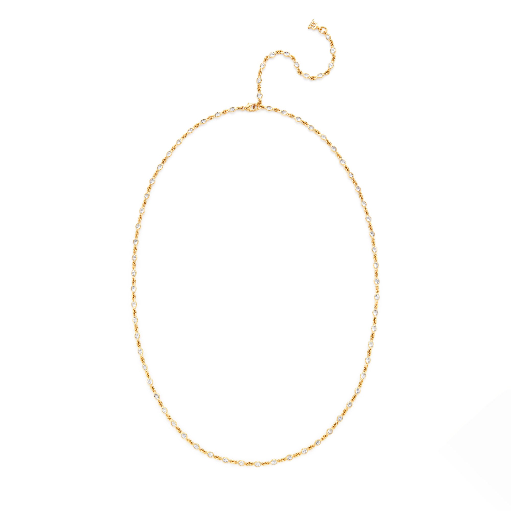 The 18K White Sapphire Chain showcases both our unparalleled selection of gemstones and our expert goldwork. This remarkable piece can be worn on its own as a luminous necklace, or can be a home for your favorite pendants. With an adjustable length from 20" to 24", the 18K White Sapphire Chain is as versatile as it is beautiful.
